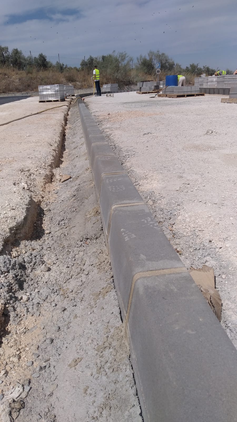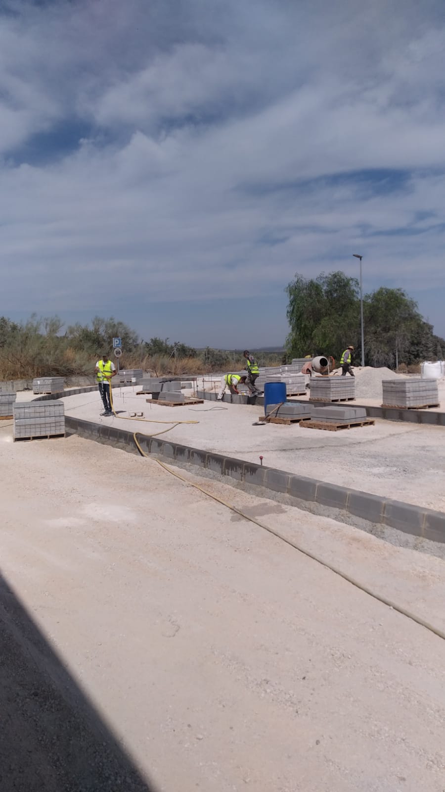 En las imágenes que acompañan esta noticia, puede observarse la evolución de los trabajos, donde ya se ha procedido a la colocación de bordillos y tacos en la explanada de la nave de mantenimiento. Además, en la zona de entrada (a la derecha), se ha realizado una limpieza con retroexcavadora y se está trabajando en la nivelación del terreno previa al hormigonado.