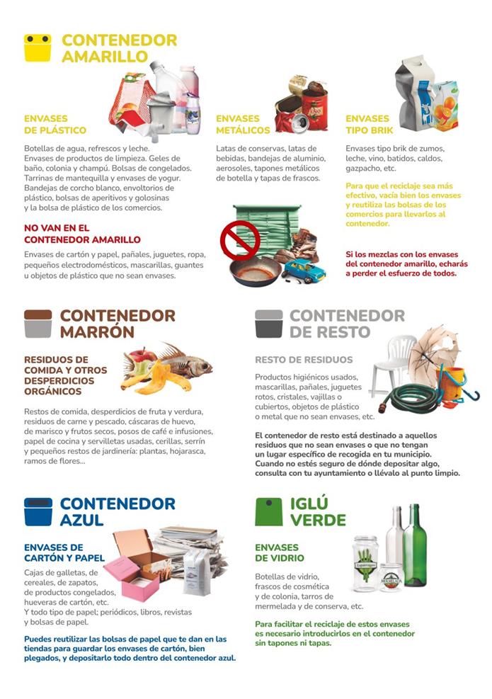 Deposita cada tipo de residuo en el contenedor adecuado. Latas, briks y envases de plástico en el contenedor amarillo; y envases de cartón y papel en el contenedor azul. ¡Cuidar el planeta empieza por pequeños gestos!